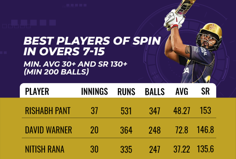 Rana, one of the league’s best players of spin bowling, is utilised much better in this combination as well. While the left-hander is positioned at No.4, he may have to drop down for the bigger names like Eoin Morgan, Andre Russell, and Dinesh Karthik based on the situation. At No.3, however, the chances of it happening are negligible.