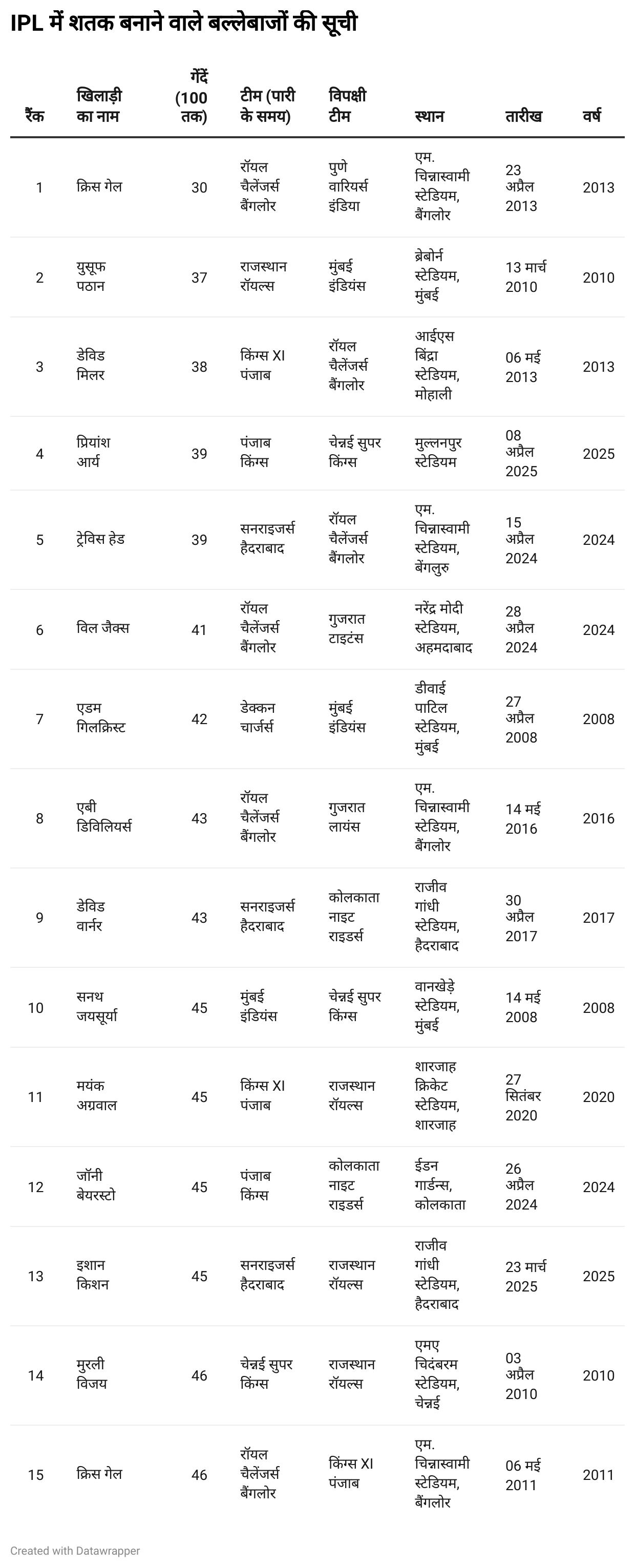 IPL में सबसे तेज शतक: क्रिस गेल का नाम सबसे ऊपर, जानें पूरी लिस्ट