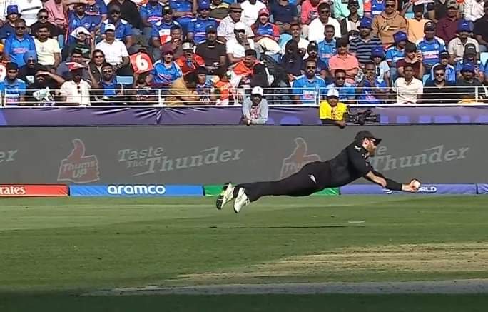 मैच के सातवें ओवर में ग्लेन फिलिप्स ने विराट कोहली का अद्भुत कैच लपककर मेन इन ब्लू को मुश्किल परिस्थिति में डाल दिया। इसके बाद न्यूजीलैंड के पूर्व कप्तान केन विलियमसन ने भी एक शानदार कैच पकड़ा और भारतीय ऑलराउंडर रवींद्र जडेजा को आउट कर किवी टीम को एक और सफलता दिलाई।