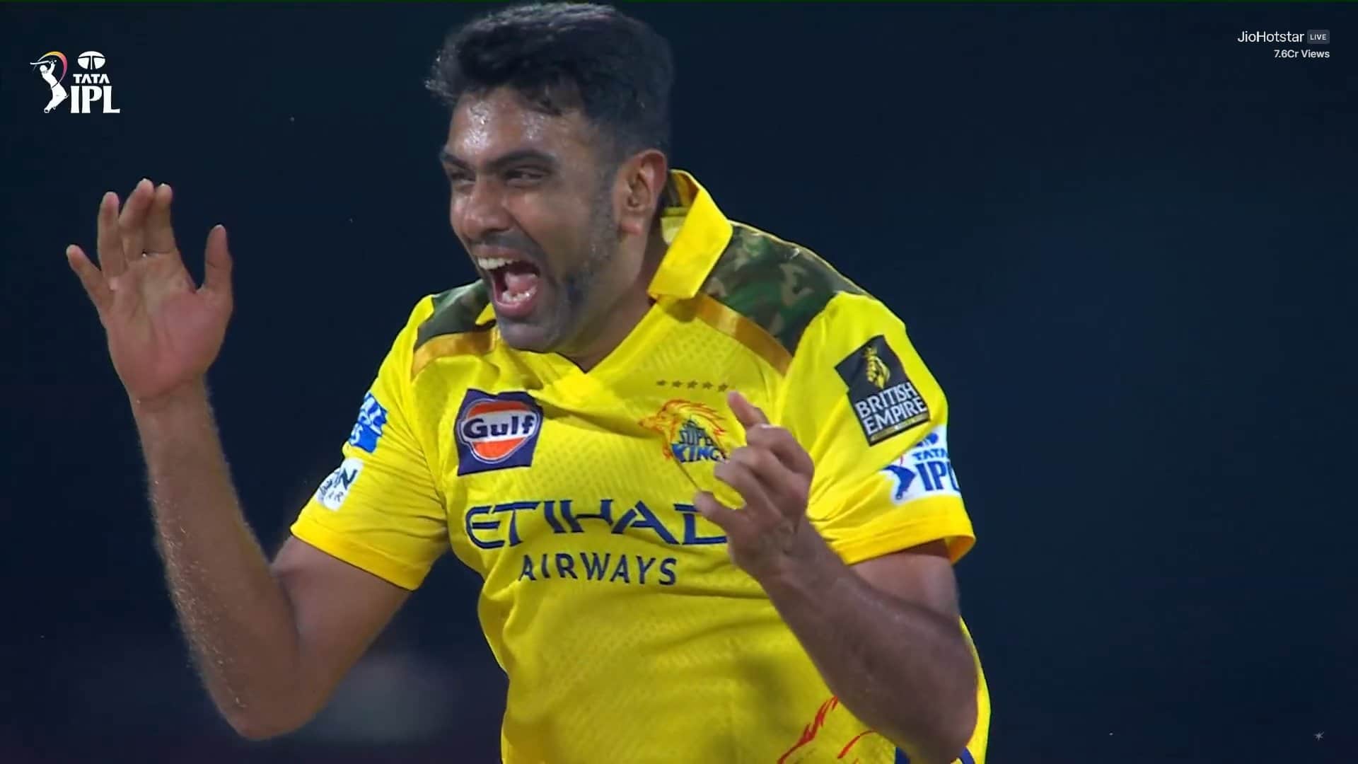 रविचंद्रन अश्विन ने 9 साल, 9 महीने और 29 दिनों के लम्बे इंतजार के बाद चेन्नई सुपर किंग्स (CSK) की जर्सी में अपना पहला विकेट लिया।