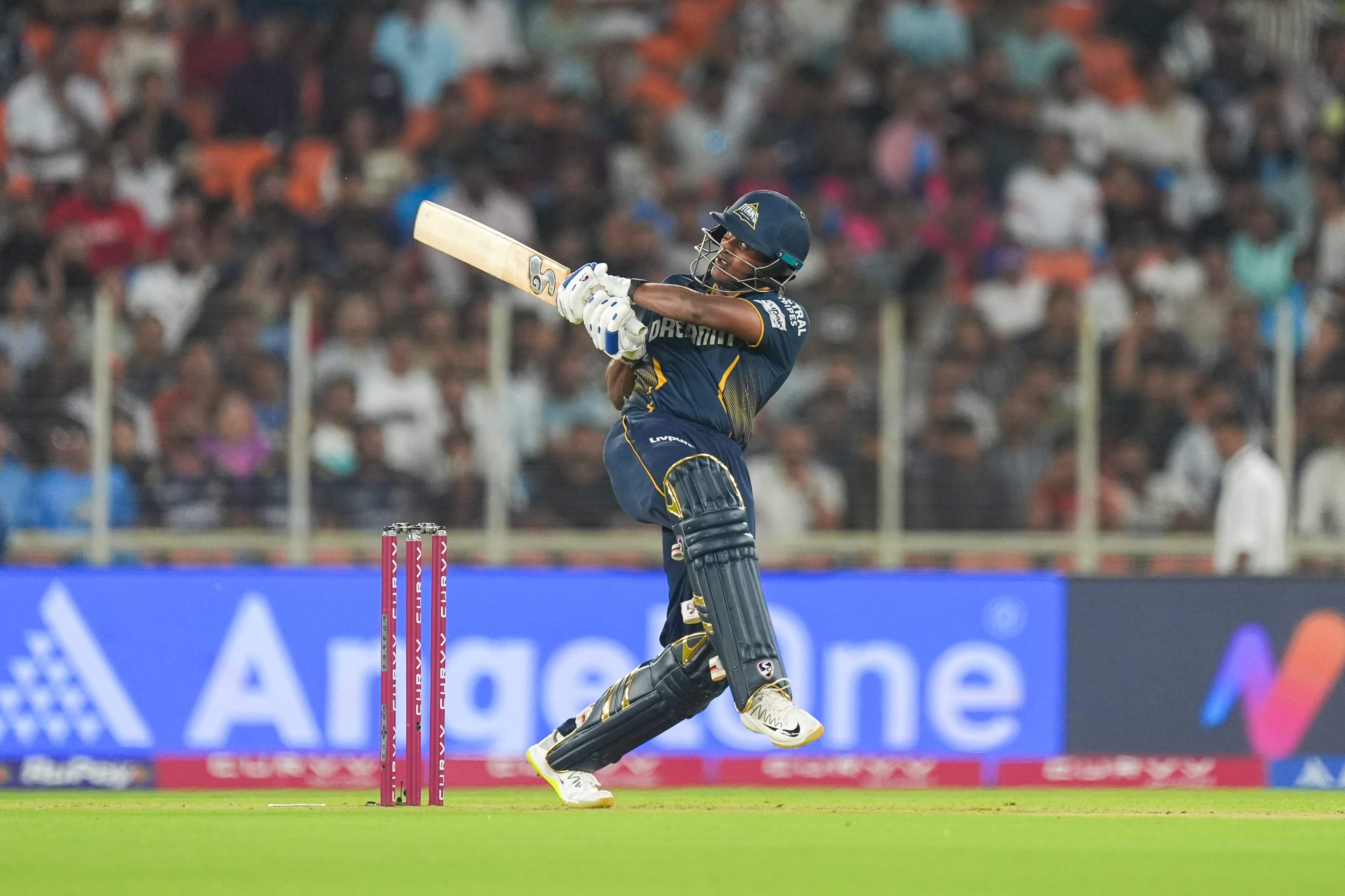 सुदर्शन, जिन्होंने इस सीज़न में 74(41), 63(41), 49(36) और 5(9) का स्कोर बनाया है। सुदर्शन का अहमदाबाद में पावरप्ले में औसत 112 है और उन्होंने 130.2 के स्ट्राइक रेट से 224 रन बनाए हैं।