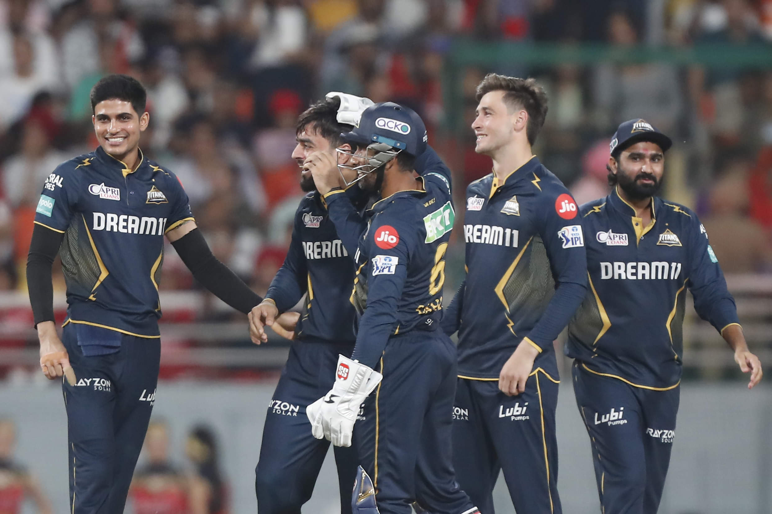 शुभमन गिल (कप्तान), जोस बटलर (विकेटकीपर), साई सुदर्शन, शेरफेन रदरफोर्ड/ग्लेन फिलिप्स, शाहरुख खान, वाशिंगटन सुंदर, राहुल तेवतिया, राशिद खान, अरशद खान/आर साई किशोर, कगिसो रबाडा, मोहम्मद सिराज, प्रिसिध कृष्णा (इम्पैक्ट प्लेयर)