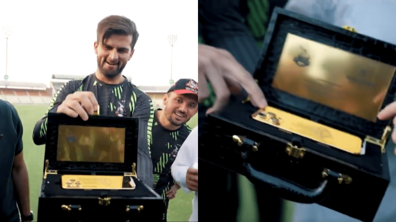 लाहौर ने सोशल मीडिया पर अपनी पोस्ट में लिखा, "हमारे कप्तान कलंदर को वह उपहार मिलता है जिसके वह हकदार हैं। एक कस्टम 24K गोल्ड-प्लेटेड iPhone 16 प्रो, जो विशेष रूप से लाहौर कलंदर्स के मुख्य खिलाड़ी शाहीन के लिए बनाया गया है!" इस पोस्ट में उस पल का खुलासा किया गया जब शाहीन को यह उपहार भेंट किया गया।