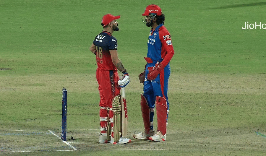 आईपीएल 2025 में दिल्ली कैपिटल्स के खिलाफ आरसीबी की पारी के दौरान विराट कोहली और केएल राहुल के बीच मैदान पर तीखी बहस हुई।