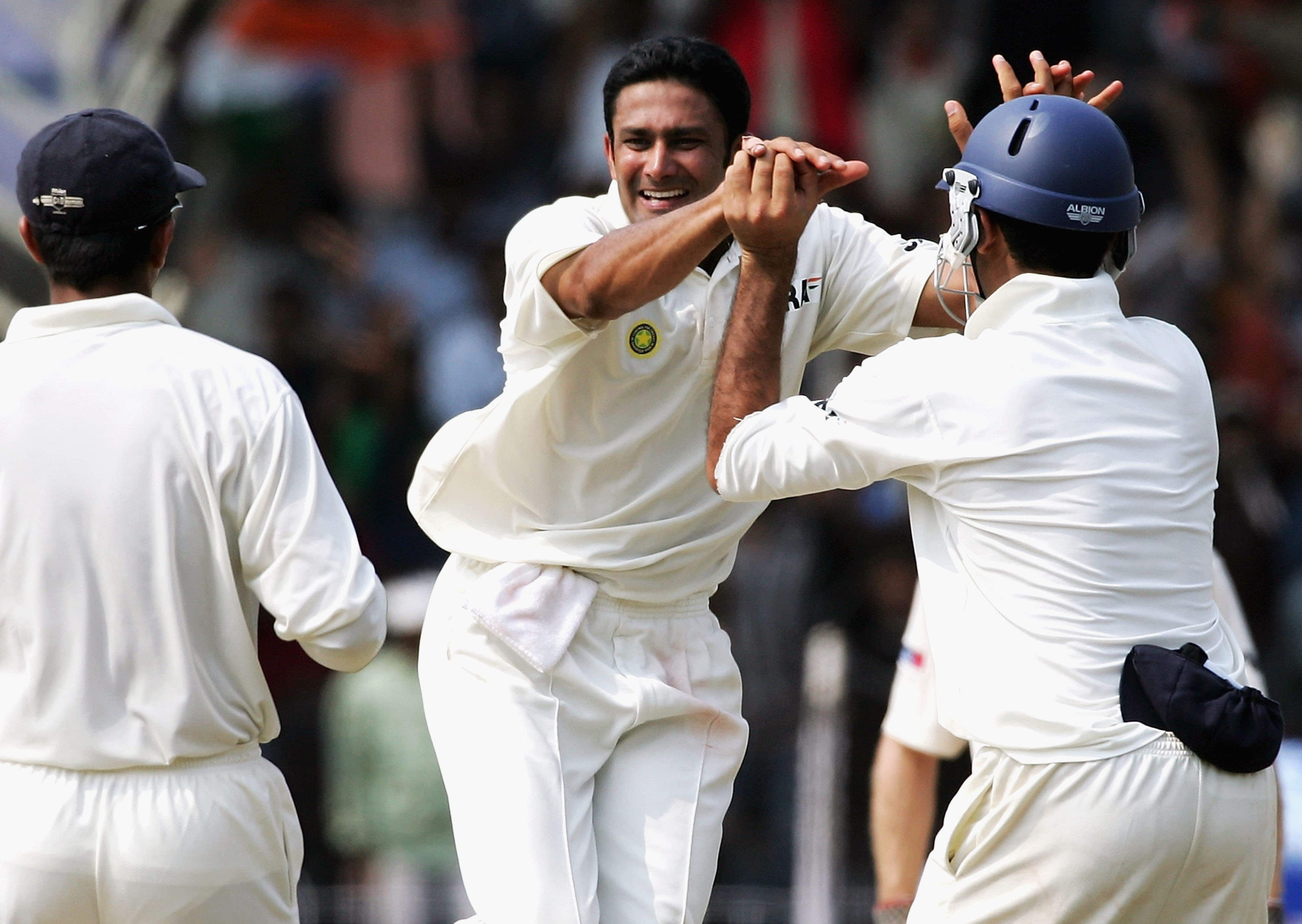 The former Indian legspinner then became only the second bowler to take 10 wickets in a Test innings