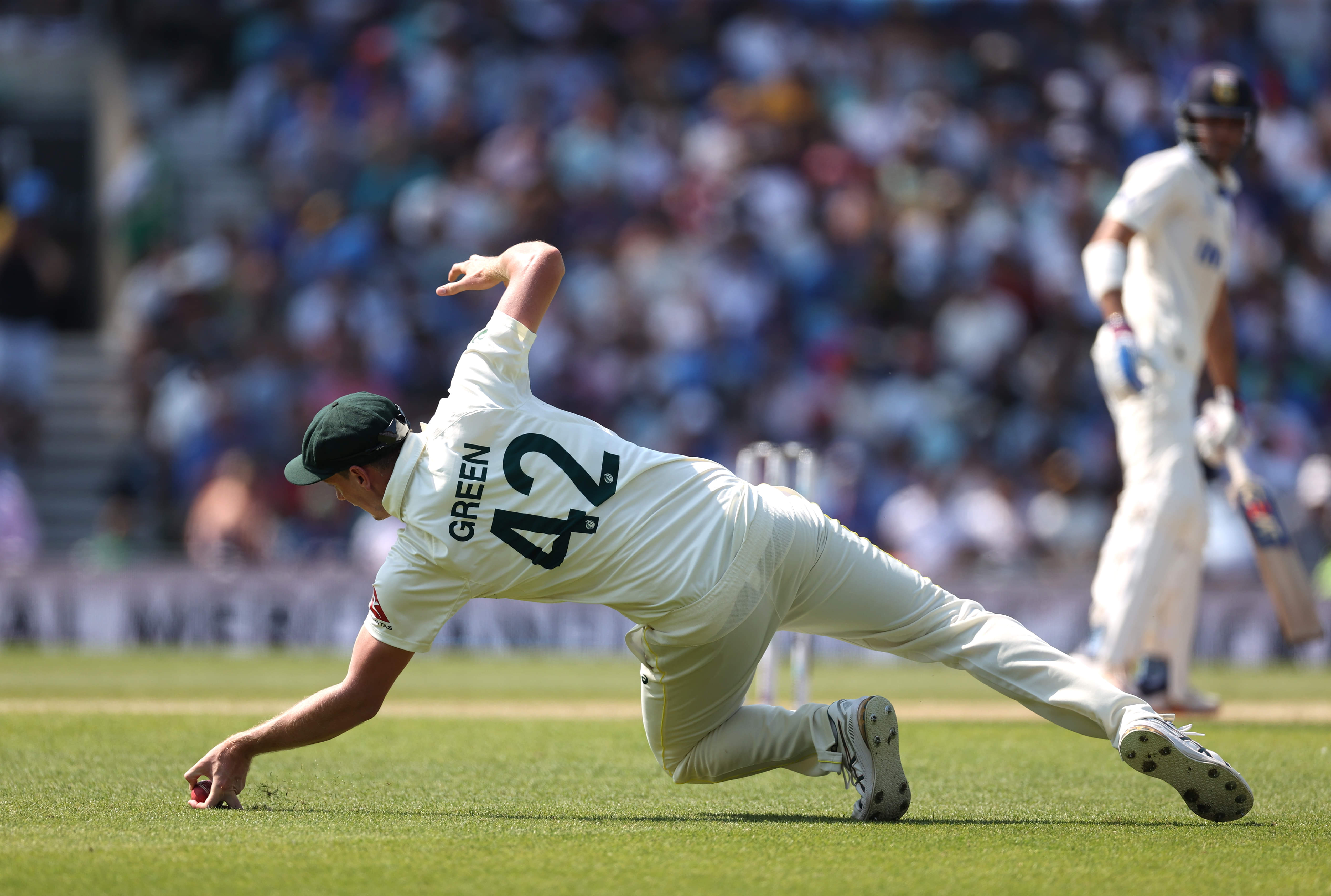 On the first ball of the eighth over, Cameron Green held onto a low diving catch to dismiss Shubman Gill, which many fans believe was a brave call by the third umpire.