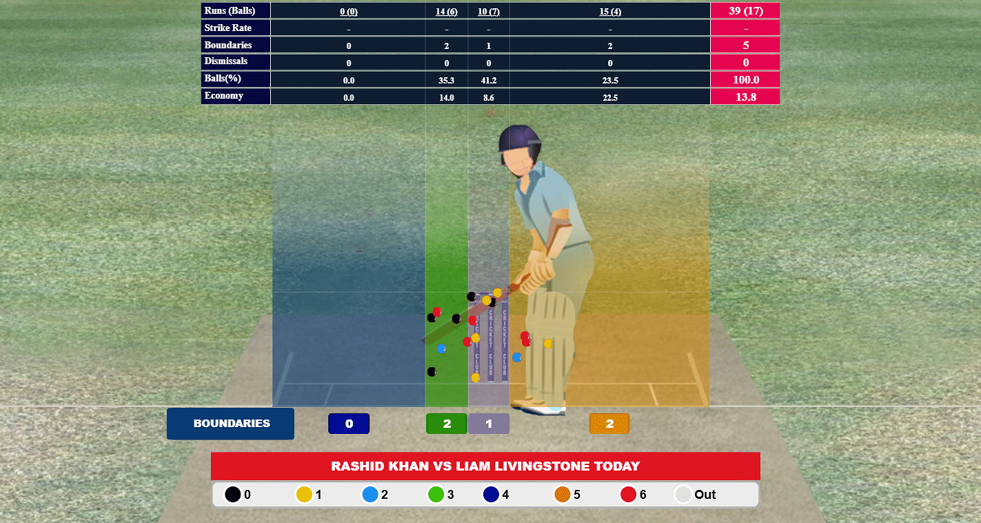 Across the 2023 and 2024 editions of the Indian Premier League (IPL), Liam Livingstone hit a grand total of zero sixes against leg-spin, amassing 29 runs off 39 balls at an average of 9.67 and a strike rate of 74.4.