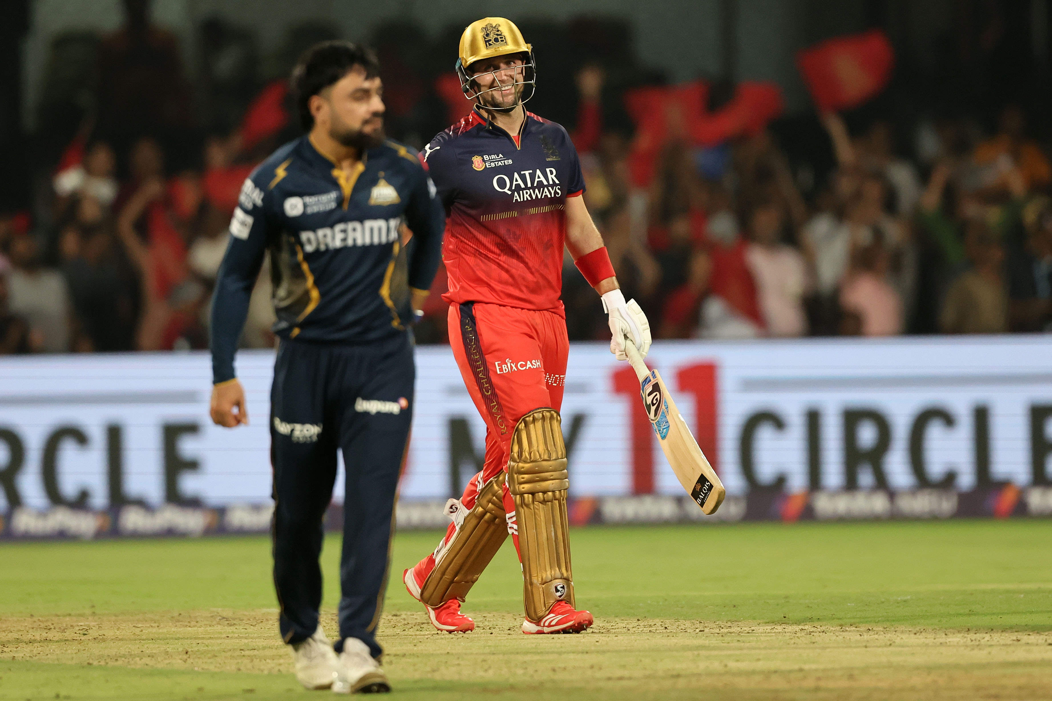 Gill introduced Rashid into the attack in the 12th over, and the game was perfectly set up for the leggie: RCB were 80/4, with their best spin-hitter Rajat Patidar back in the hut, with Rashid having Livingstone, Jitesh and Tim David to bowl to.