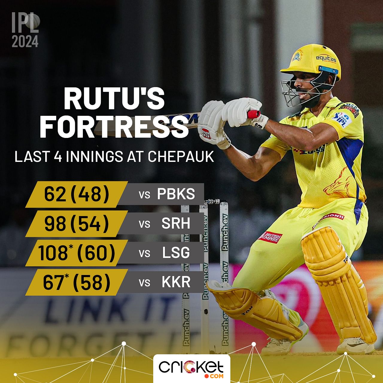 With wickets falling around him, Chennai Super Kings (CSK) skipper Ruturaj Gaikwad held one end up to score a 48-ball 62 to help his side to a competitive total. He continued his fine form at Chepauk, in the process.