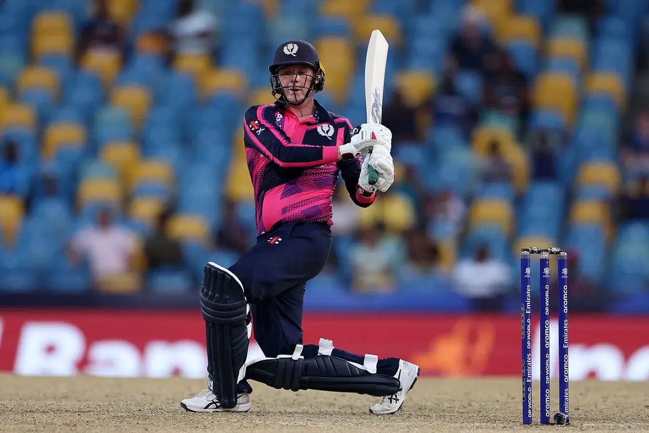 With 83 required off 54 balls, Scotland needed a pair to counter Namibia, and that’s what Michael Leask and Richie Berrington did. The duo put on a 42-ball 74-run partnership, where Leask did much of the work, scoring a 17-ball 35, a knock that consisted of four sixes, the joint-most hit by any Scottish batter in T20 World Cup history.