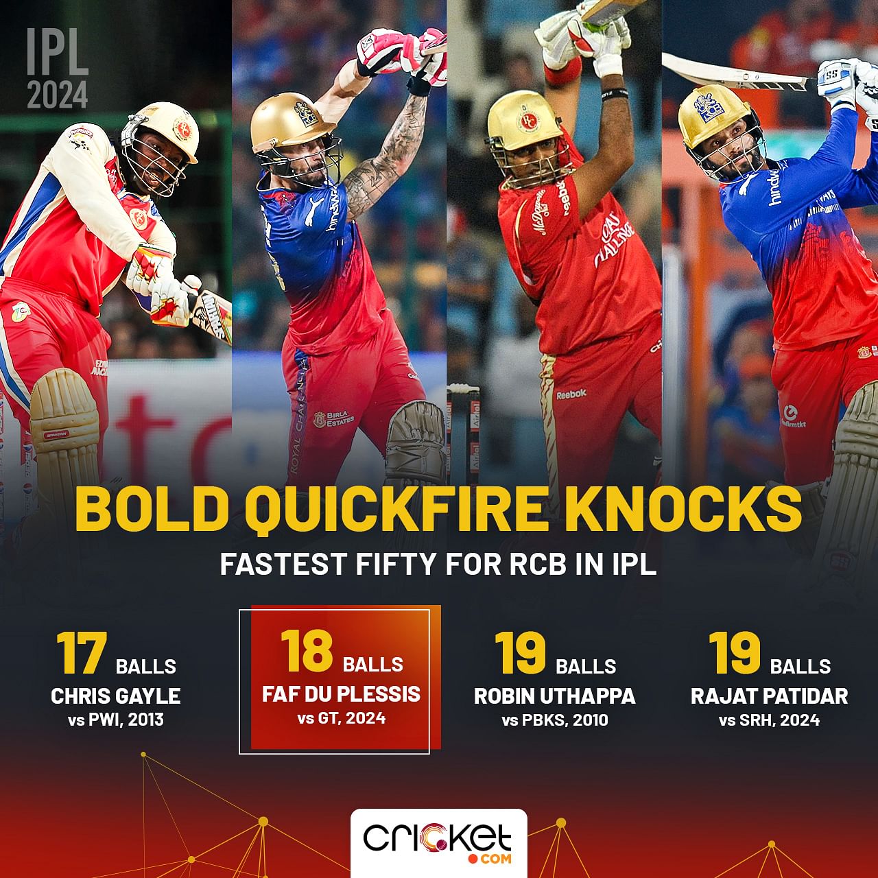 In doing so, Du Plessis also notched up an 18-ball fifty, the second-fastest 50 for RCB.