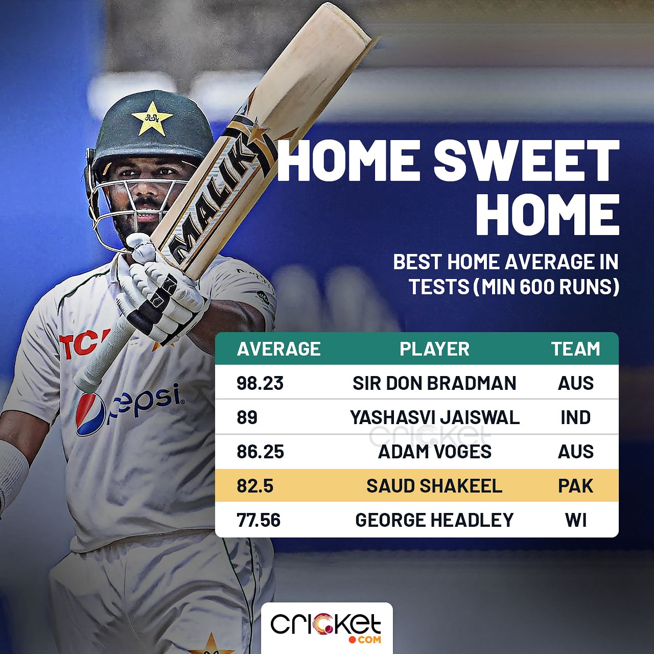 Shakeel scored 141 runs in 261 deliveries and became the joint fastest Pakistani batter, scoring 1,000 runs in Test cricket. He has the most runs for any batter after playing 20 Test innings.