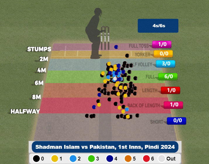 Shadman began Day 3 for Bangladesh on a solid note. He was astute in defence, and although the runs hardly came in the first session for Bangladesh, he kept dead-batting everything the Pakistani pacers threw at him. Unfortunately, he became only the second Bangladesh batter to get out in the 90s in a Test in Pakistan.