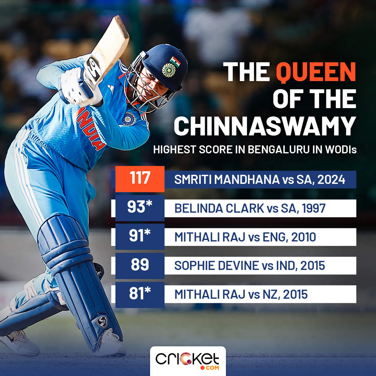 This was Smriti Mandhana’s first century in India, and it came at a time when her team needed her to bat throughout the innings and take them to a respectable total. She put on a glorious display of disciplined stroke play that had 12 fours and a six.
