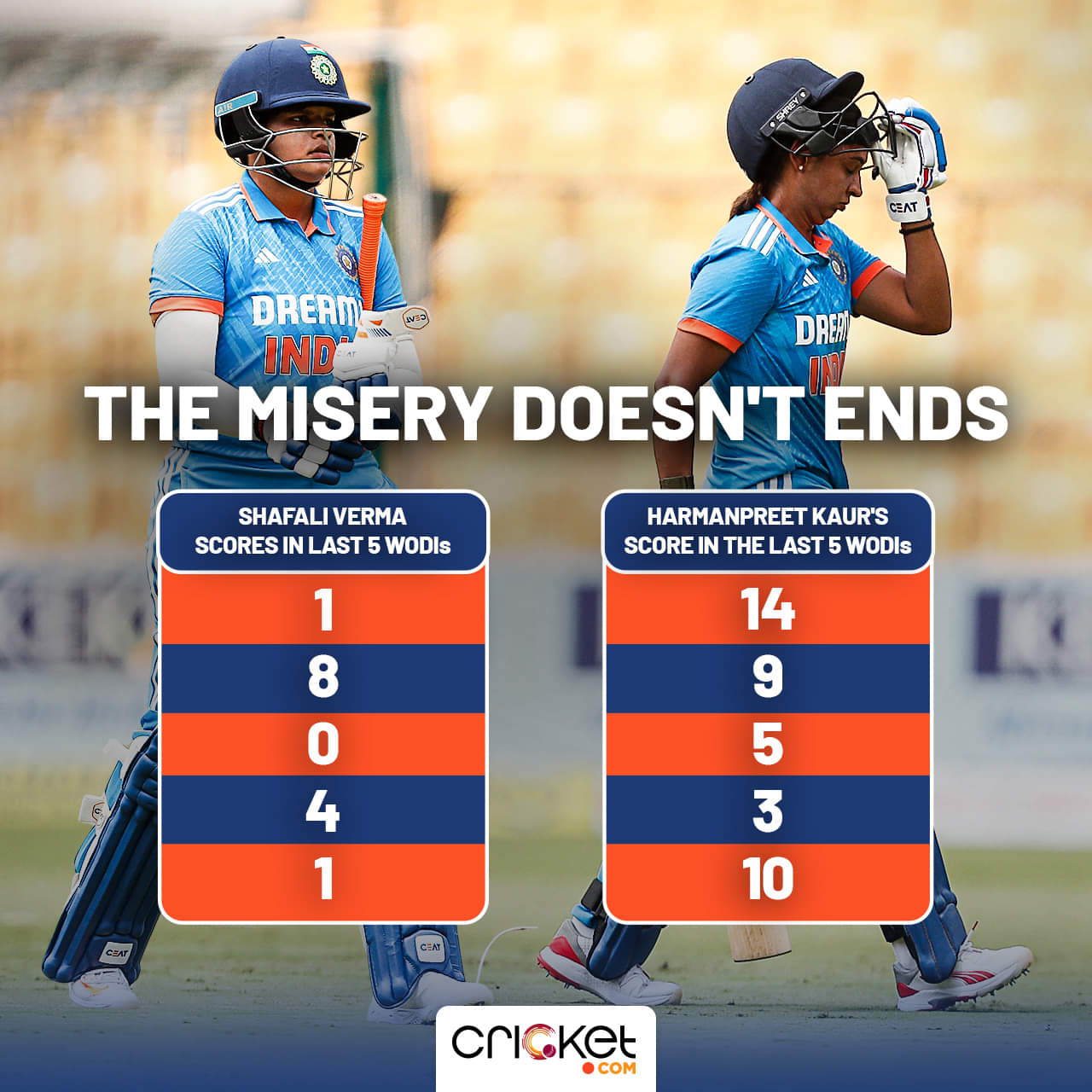 On a pitch with grip and seam movement with the new ball, the Indian top order struggled to keep wickets in their hands. Shafali Verma (7 off 12), Dayalan Hemalatha (12 off 16), Harmanpreet Kaur (10 off 11), and Jemimah Rodrigues (17 off 28) — all departed cheaply and India were 99/5 by the 22nd over.