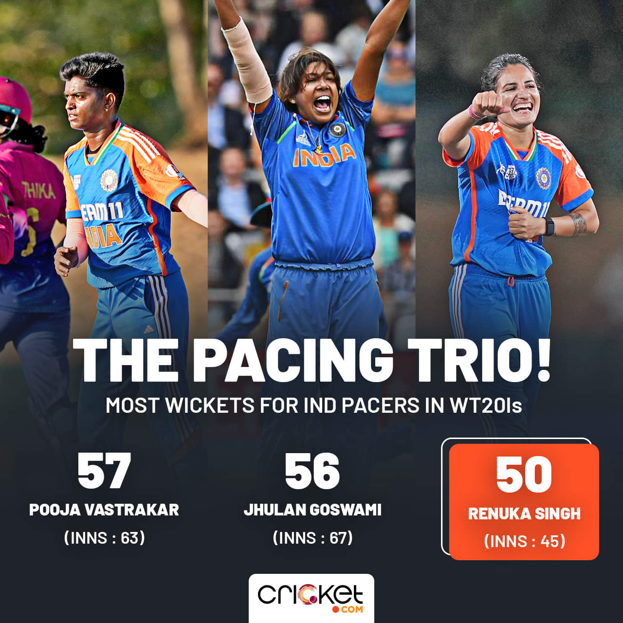 Pooja Vastrakar continued the trend of bowling short and getting wickets in the Asia Cup after dismissing Rabeya Khan on a short and fast ball that the batter failed to time and gave a catch to Shafali Verma at mid-on. With that wicket, Vastrakar became the Indian pacer with the most wickets in T20Is.