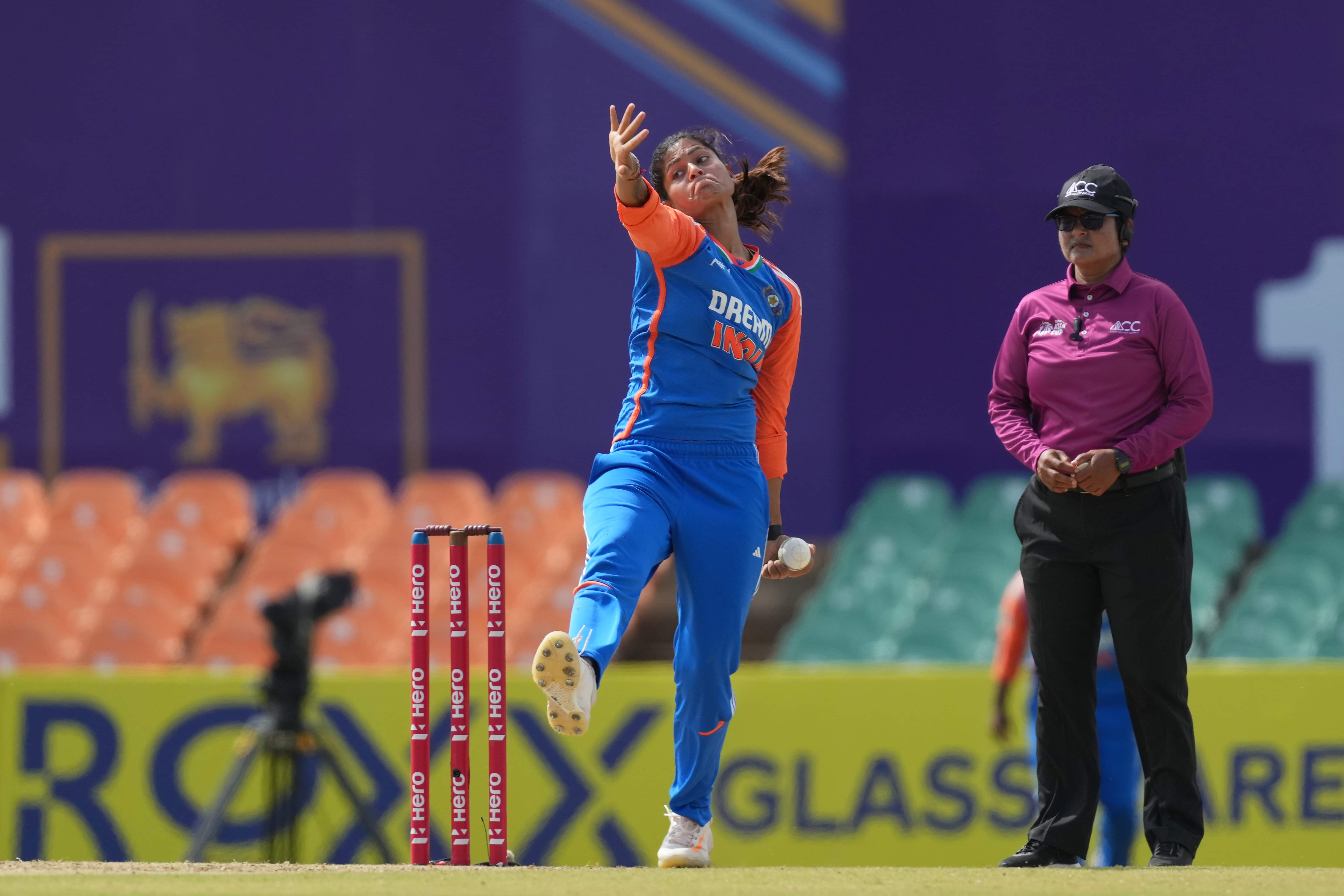 Renuka Thakur looked in rhythm in the first six overs in the semifinal. Bangladeshi batters, who were looking to be aggressive from the first ball, got carried away and ended up losing three wickets against her in the powerplay. She finished her spell with a maiden and figures of 3/10.