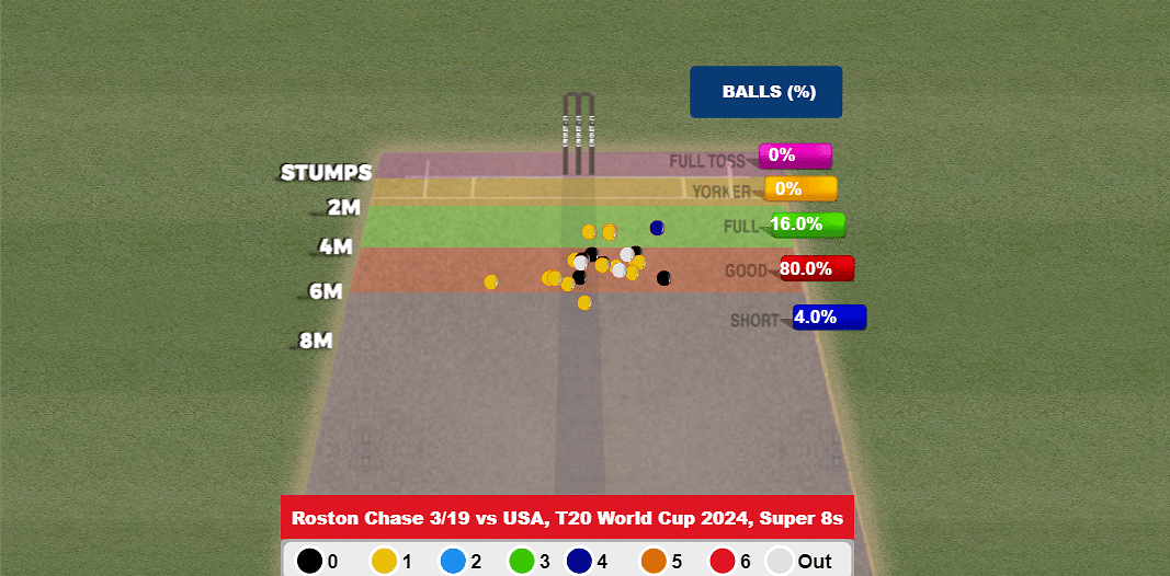 Roston Chase has had very little to do with the ball this T20 World Cup, but when he got a chance to bowl his full quota of overs against the USA, he did not disappoint as he finished with 3/19 - his best figures in T20Is - to put West Indies firmly in control.