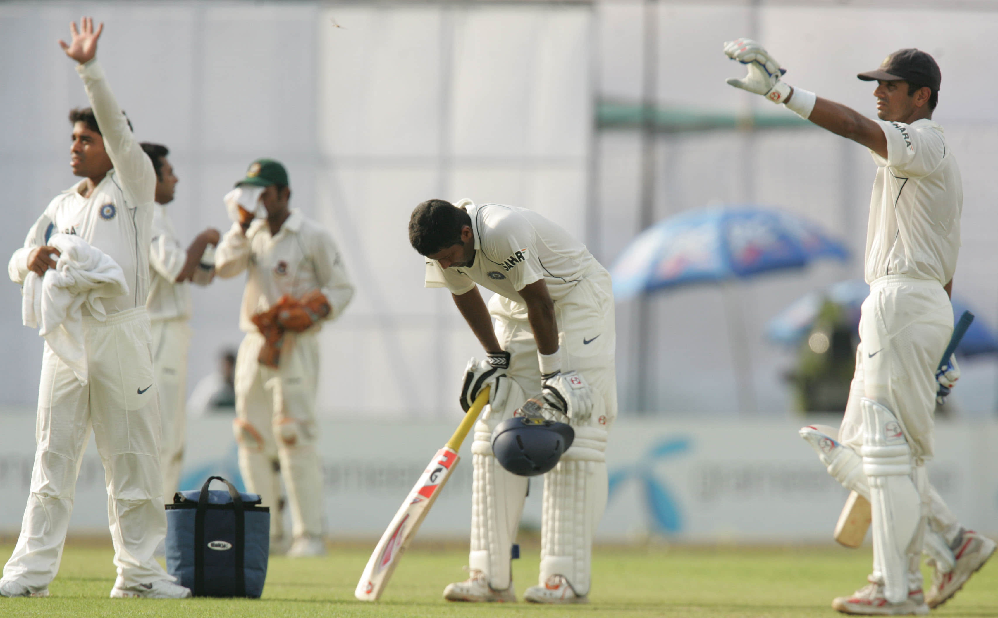 Sachin Tendulkar then joined Dravid in the middle with both batters notching up hundreds. When Dravid, batting on 129, spooned a catch to the backward point, India lost their first wicket at the score of 408. Bangladesh had to toil for 108.2 overs to fetch their first wicket, regretting their decision to bowl first. After the overnight rest, Karthik (also out for 129 later) returned to complete his hundred, making it the first instance of top four batters scoring a ton each.