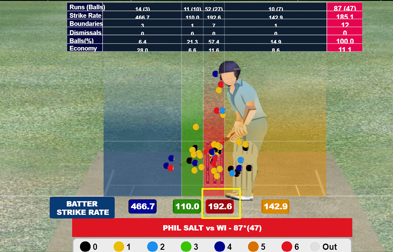 185. That’s the strike rate with which Phil Salt punished the hapless West Indian bowlers en route to his 47-ball 87. In fact, his last five scores against them read: 87*, 38, 119, 109* and 25.