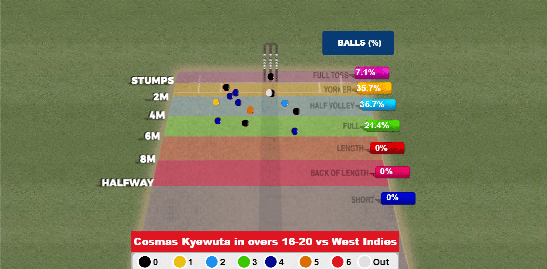 Figures of 1/42 does not do justice to how well Cosmas Kyewuta bowled. He bowled fast, delivered those cross-seam deliveries and more importantly, executed those yorkers at the death to perfection, which removed Sherfane Rutherford.