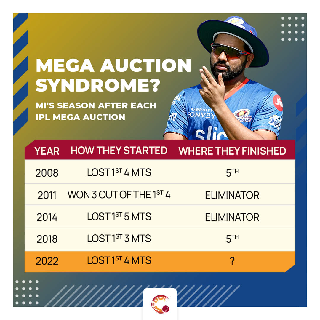 Till now, there have been five mega auctions, including the first in 2008. In the first season, Mumbai had lost the first four matches. The next mega auction happened in 2011 and they had a wonderful start to the season as they won three out of their first four. But, in 2014, they lost the first five matches and in 2018, they lost the first three matches out of the four. This season, they have lost four in four.