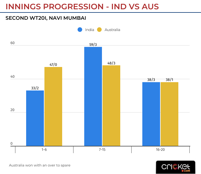 India have defeated Australia in back-to-back WT20Is only once - back in 2016. They missed out on an opportunity to replicate that and also clinch the T20I series.