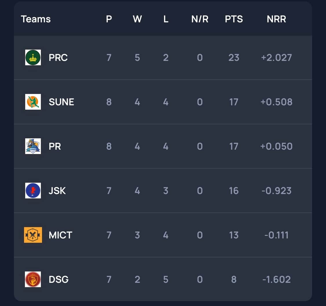 Well, the Capitals are still breakaway leaders but the teams that were placed fifth and sixth respectively after 13 games, JSK and Sunrisers, are both in the Top 4. JSK, in fact, have a game in hand and will go second if they win that. Talk about a turnaround.