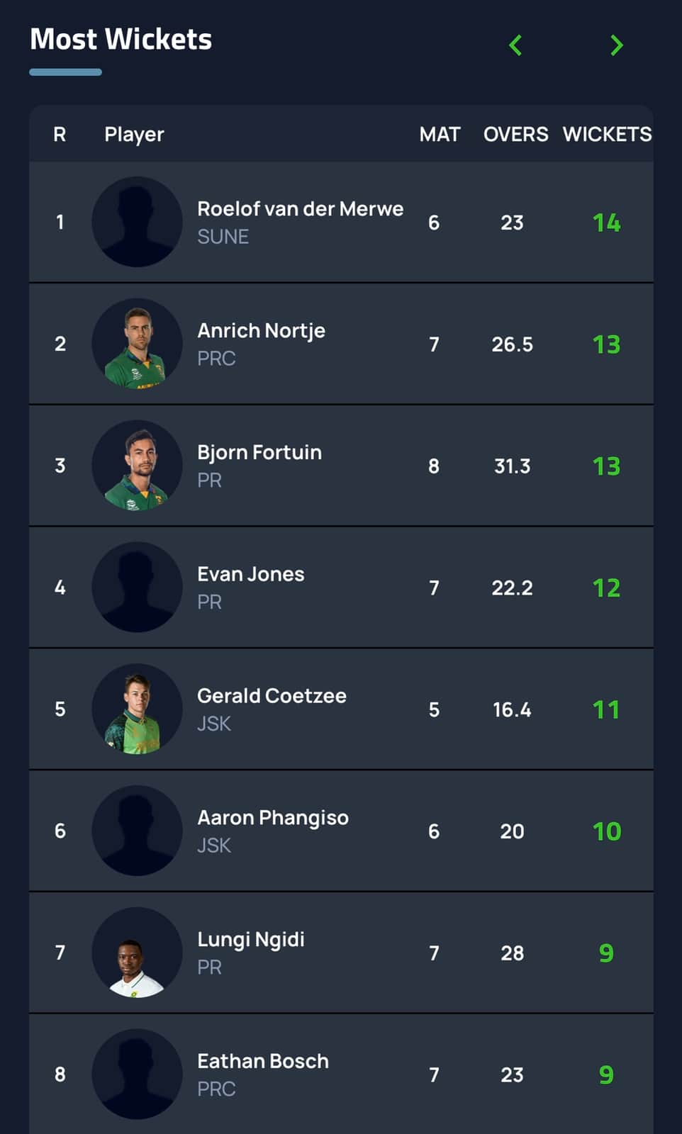 Jo’burg Super Kings’ wildcard pick Aaron Phangiso sizzled in week one, picking 10 wickets in 6 games at an ER of 7.05, but du Plessis & Co. will not have the left-arm spinner’s services for the second leg of the competition since he’s been banned from bowling due to an illegal bowling action.