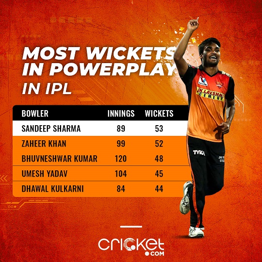 Did You Know: Sandeep Sharma has now picked 53 wickets in the Powerplay in IPL. The most by any bowler. The pacer went past Zaheer Khan's tally of 52.
