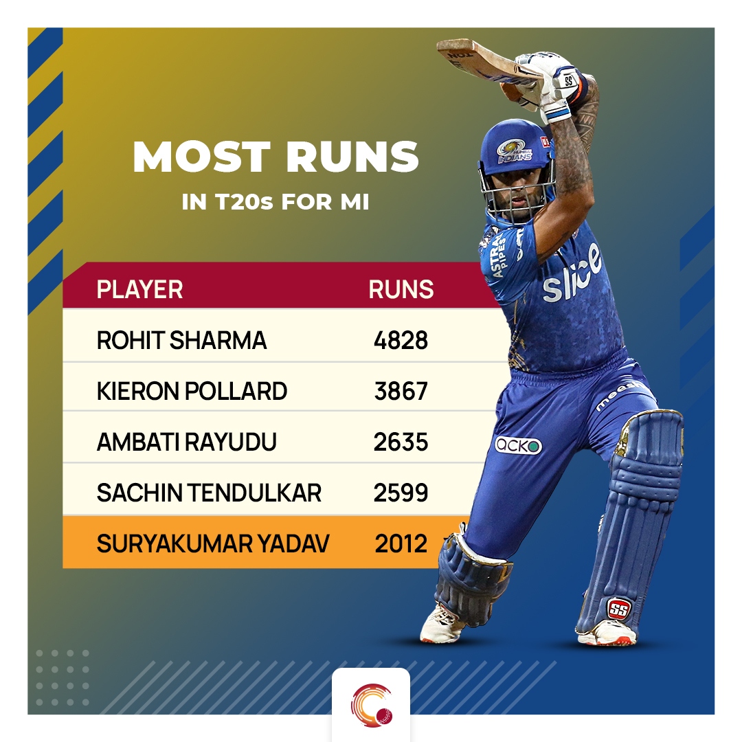 The 31-year old scored a quickfire 32 off 21 deliveries studded with three boundaries and one six to help the five-time champions recover after early jitters. En route to this classy innings, he became the fifth player for the side to score 2000 runs in the shortest format of the game. Rohit is the leading run-scorer for the franchise with 4828 runs.