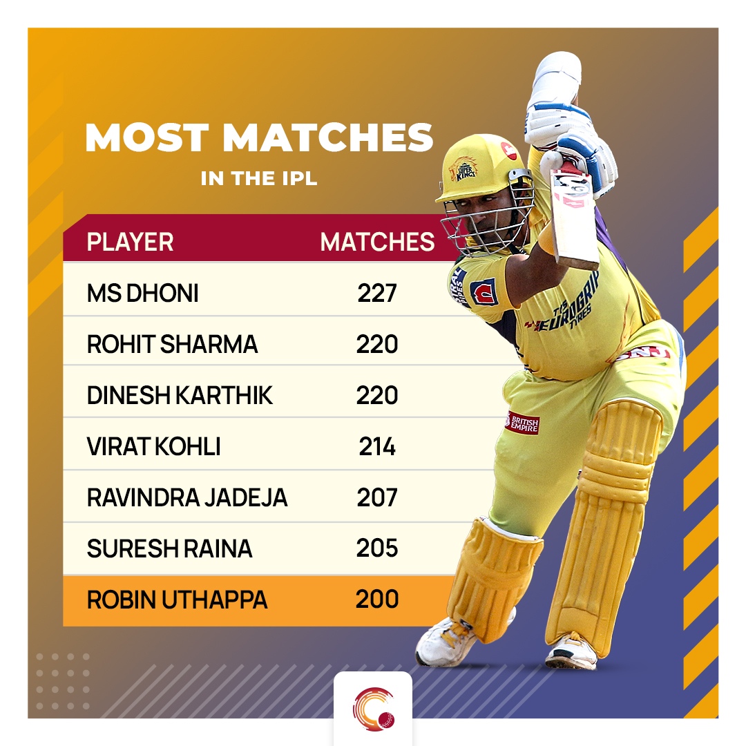 One of the mainstays in the batting unit of Chennai Super Kings, Robin Uthappa, joined an elite list of players to become only the seventh player to feature in 200 games in the history of the Indian Premier League.