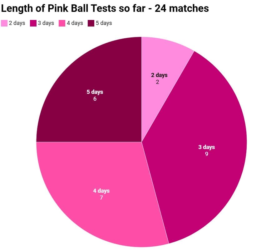 The pink ball Test has completely taken out the aspect of players fighting it out till the end of Day 5 and the match ending in a draw, as all 24 D/N Tests so far have seen a winner.