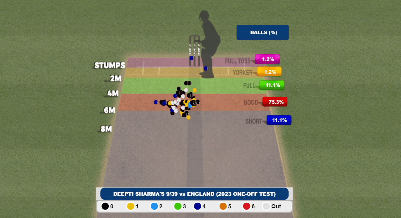 Deepti picked up figures of 9/39 in the one-off Test against England at the DY Patil Stadium, including having figures of 5/7 in the first innings, where she turned the ball a mile. It wasn’t just that; the fact that the ball was kept low made Deepti much more menacing than she was in the first place.