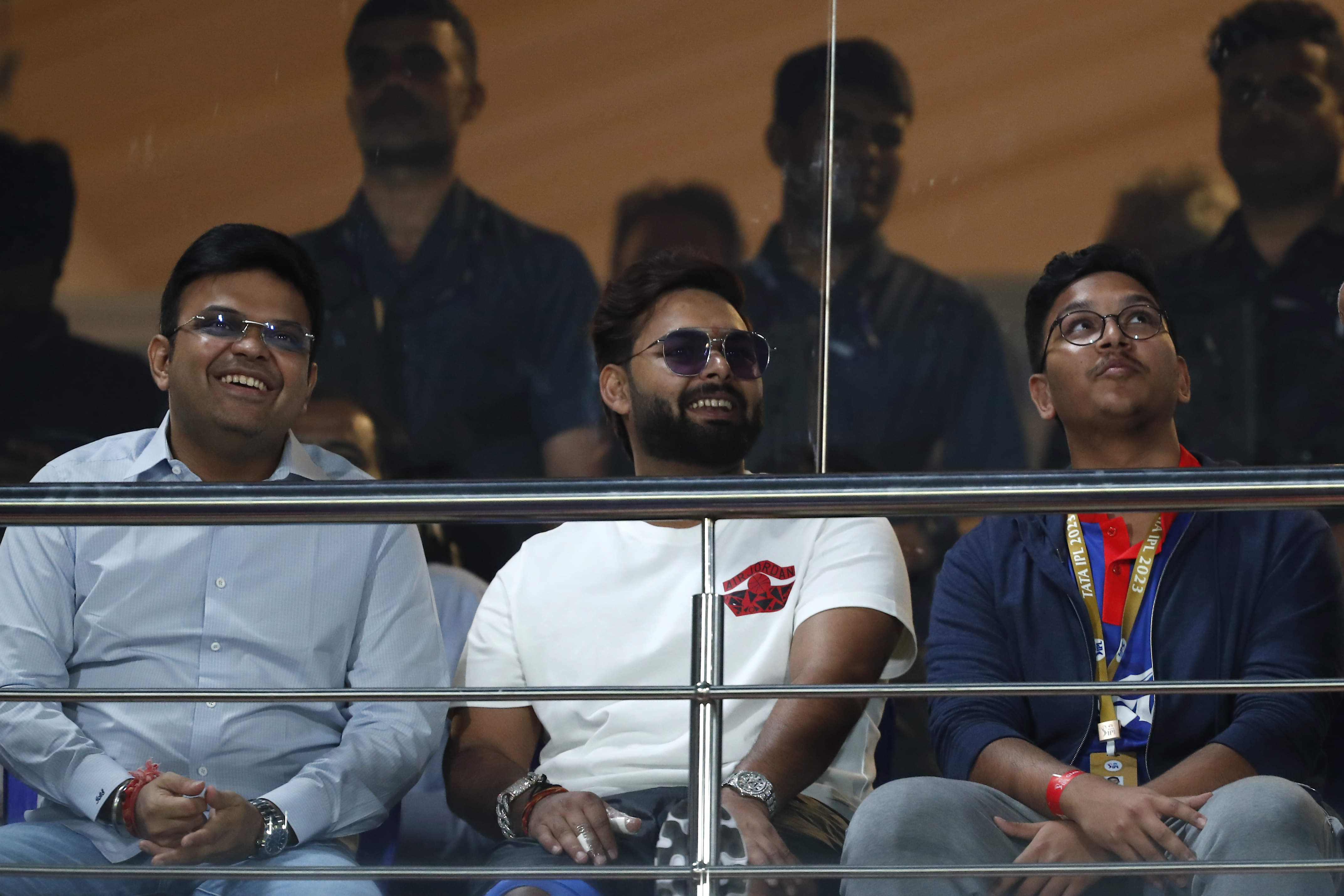 By now the officials are appearing and by Pant’s side. BCCI VP, Rajiv Shukla pulls Pant’s cheeks. BCCI secretary, Jay Shah is by Pant’s side. Everyone is talking animatedly to Pant.