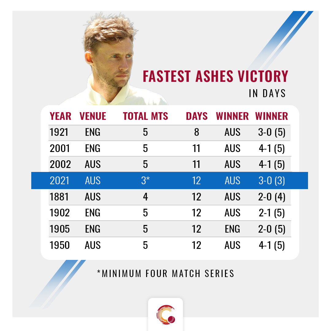 The visiting side has failed to produce consistent performances in this series and lost the Ashes in 12 days, the fourth fastest in the history of the game in a minimum of four-match series.