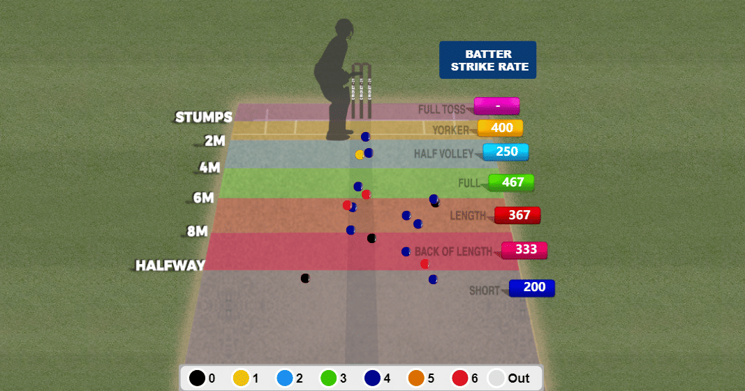 Head took care of the pacers in the phase, scoring 59 off 17 balls. No length was safe against him as Head bashed at a strike rate of 200 or above in every zone.
