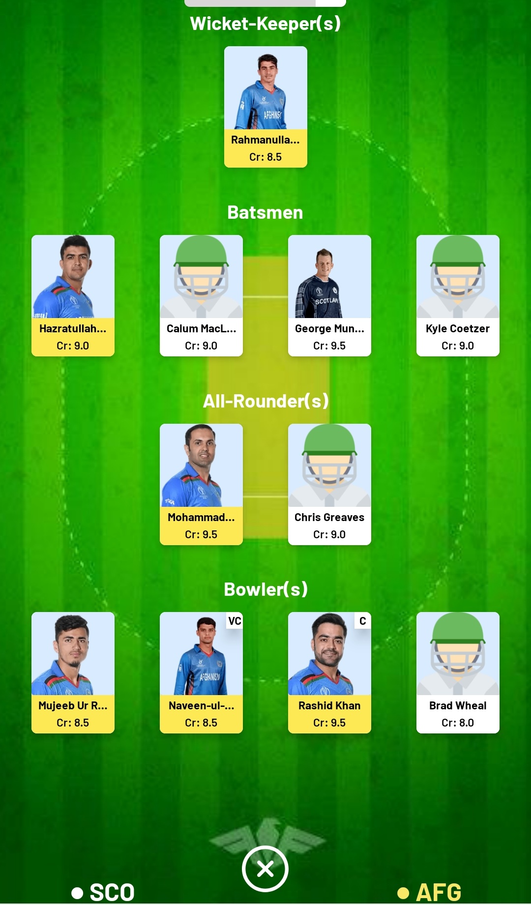 It is an obvious choice but there are reasons why Rashid Khan should be your captain for this match. A leg-spinner who can bowl ripping googlies is always a safe captaincy option against non-Asian Associate teams since they are not used to play quality spin. The Netherlands exemplified that when they were bowled out for 44, handing three wickets to Wanindu Hasaranga. Scotland pose a perfect opportunity for Rashid to get into wicket-taking form at the start of the tournament.
