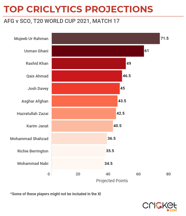 FANTASYAfghanistan will kick off their T20 World Cup campaign on Monday (October 25) in Sharjah. They will be facing Scotland, the Associate nation which has stormed its way into the Super 12s with a clean sweep in the first round. Scotland are an in-form side but facing Afghanistan is tricky business even for some Test-playing nations.