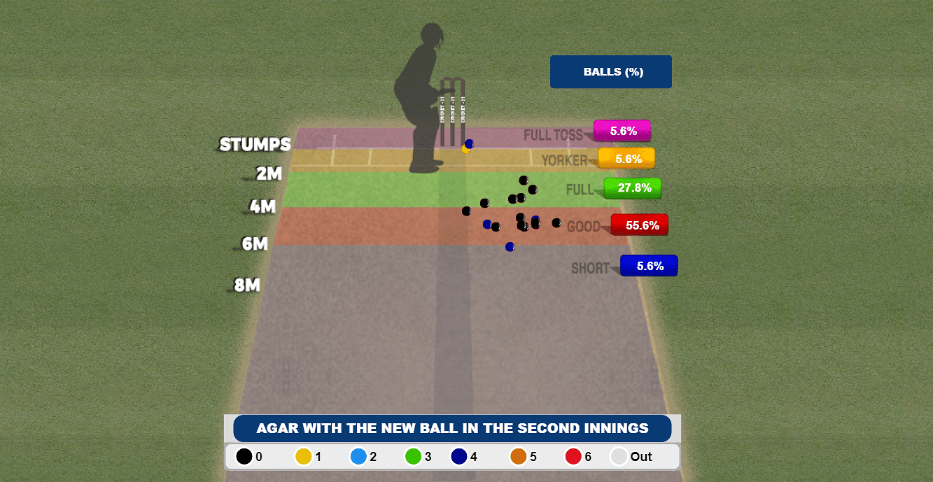 This was partly true in the first innings, where he went at just over 2.00 runs per over and largely kept the runs under check. In fact, across the 84 balls he bowled in the first dig, Agar conceded just one boundary. Impressive for any type of spinner notwithstanding venue, conditions or opposition.
