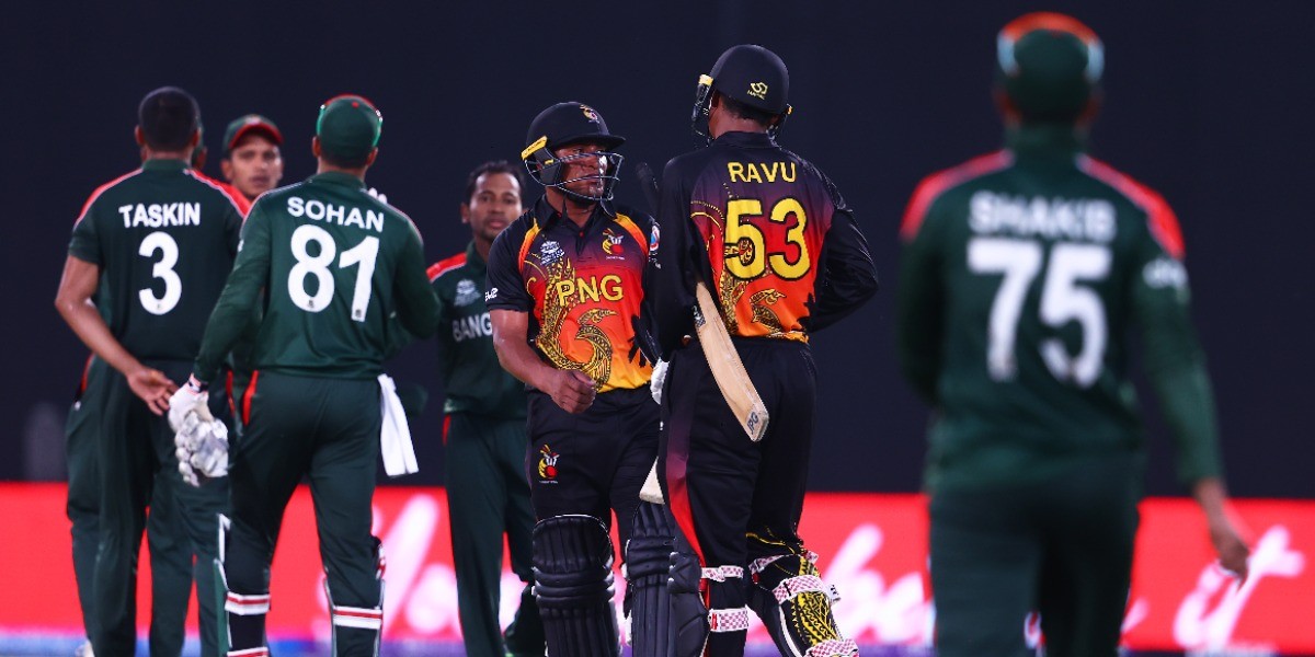 It was a procession for PNG batters, as Shakib, the wily-old fox, snared two wickets in the 5th over, as Bangladesh were eyeing a massive victory after reducing the opposition to 14 for four.