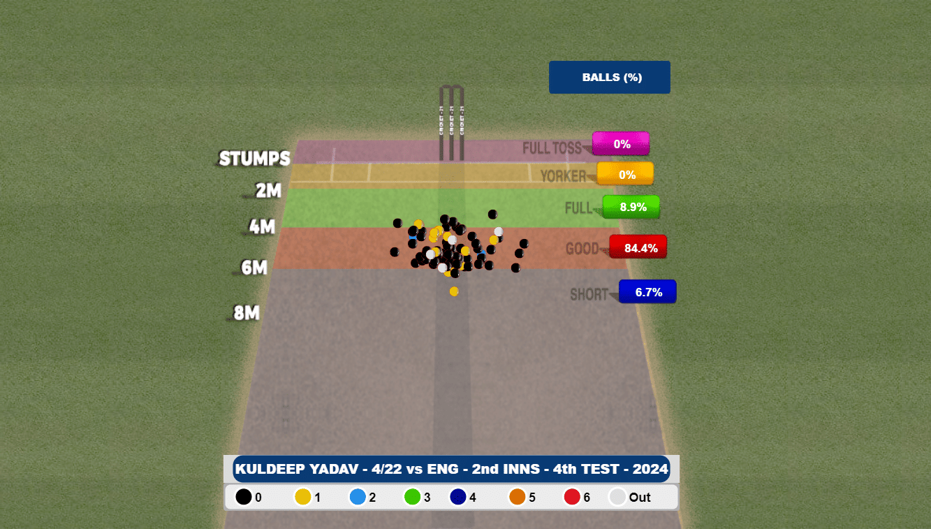 In this series, Kuldeep has faced 293 deliveries with the bat and has an impressive control percentage of 83.3%. In case you were wondering, that’s more than a host of batters in this series, including Jonny Bairstow, Ben Stokes, Zak Crawley and Ollie Pope.