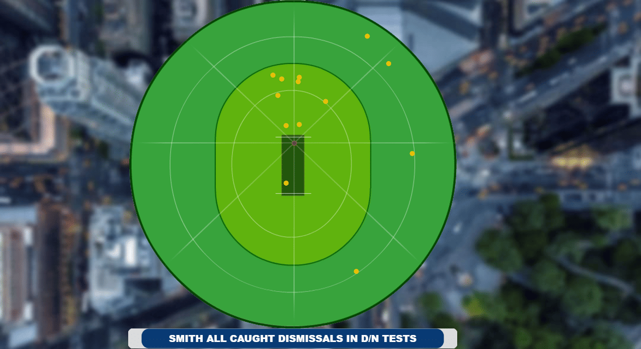 Out of which, seven have come behind the stumps, either to the slips or to the wicketkeeper, which is a real template for India. But if nick doesn’t come, then there’s the short ball ploy, which has troubled Smith in day-night Tests, courtesy of Neil Wagner, Alzarri Joseph and Mark Wood.