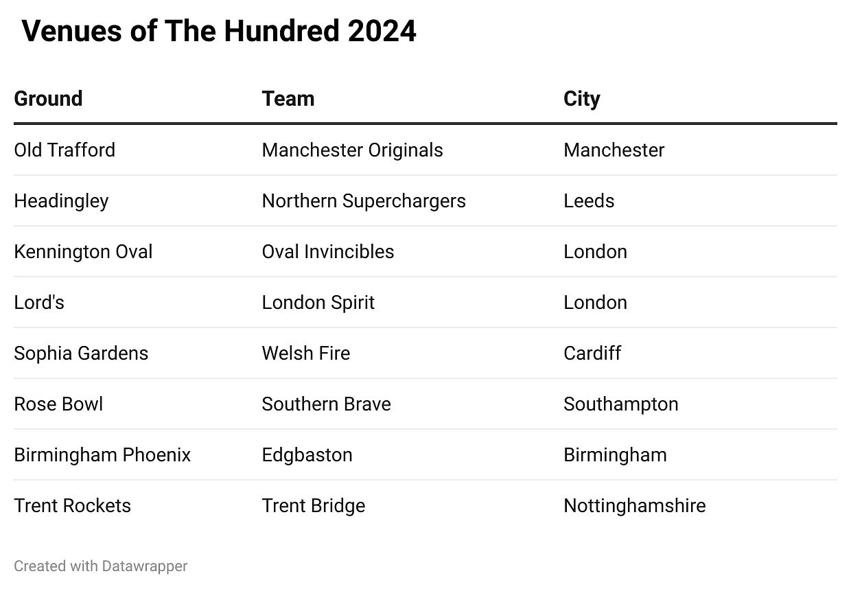 Just like the men’s competition, eight venues across seven cities in England and Wales will host The Hundred 2024 Women’s competition. The venues with their home teams and cities are as follows: