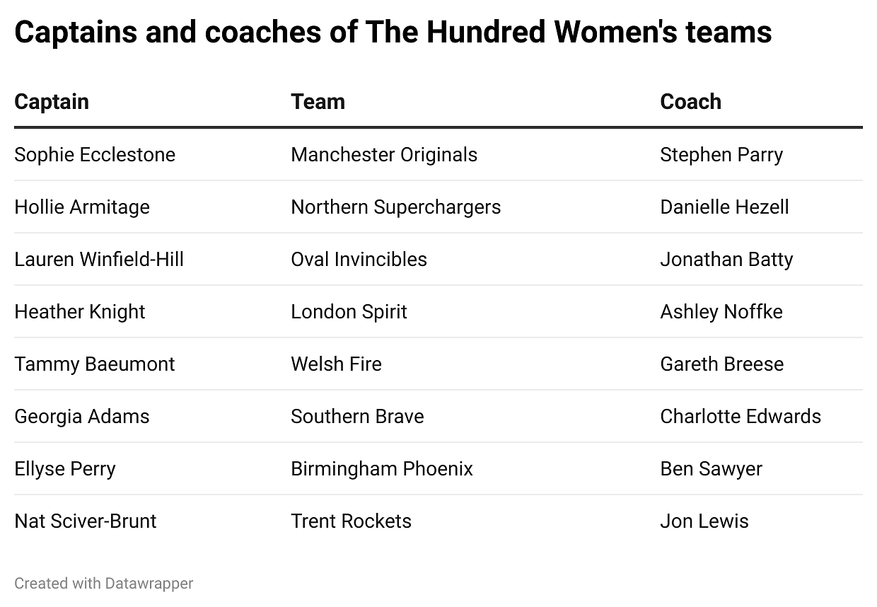 Now that we know all about who is available, who is not, and who has how much money, it is time to know who they are playing under. Right, the captain and coaches of the teams in The Hundred 2024 women’s competition.