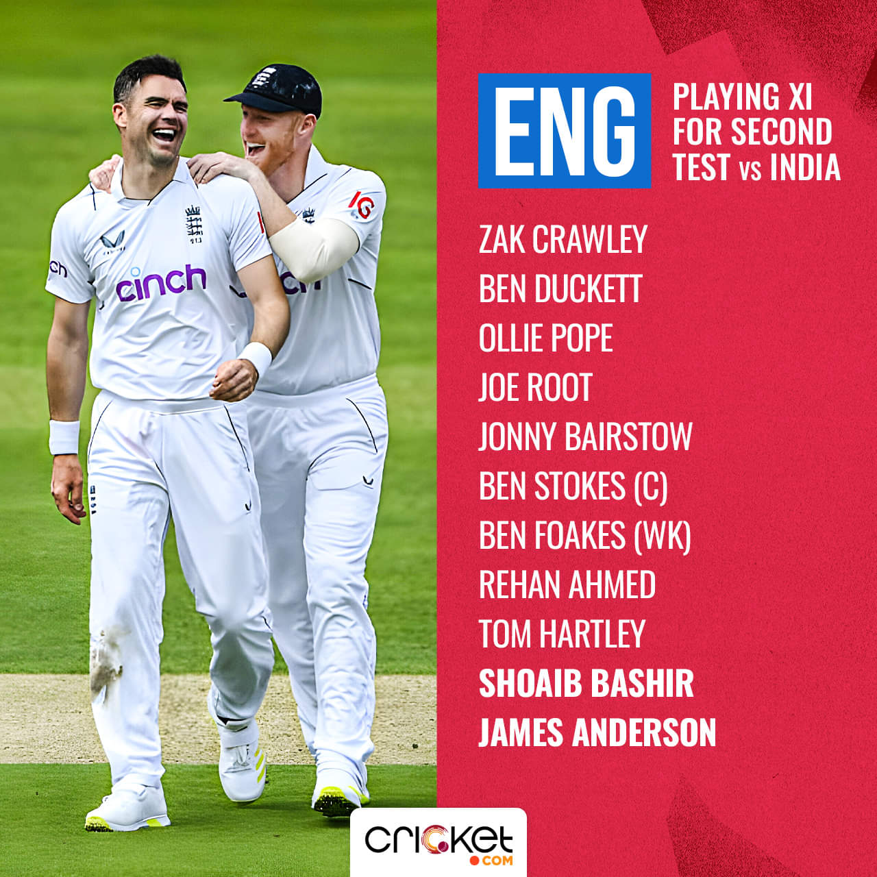 This time, spinner Jack Leach has had to sit out due to his knee injury, and the tall off-spinner Shoaib Bashir will be making his debut for England. Meanwhile, along with three young spinners who have played a total of three Tests between them, James Anderson has also made it to the English eleven, replacing Mark Wood.