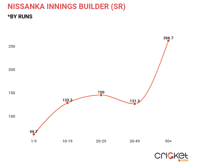It was raining in Dharamshala before the game began and there was a considerable amount of fog in the air as well. Pacers had a zing from the surface and Nissanka’s talent was in for a big test. Not only did he pass with flying colors, but also laid down the marker for the visitors with his pacing. In the first 9 balls, he batted with a strike rate of 66.7 but ended up with a strike rate of 141.50 - the kind of acceleration that would make any batter proud.