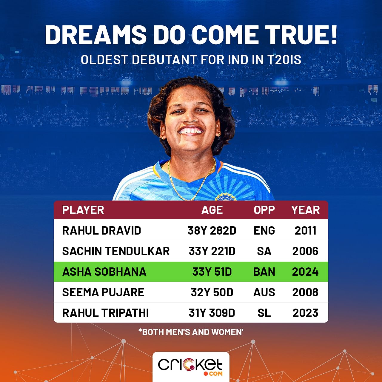 At this point, you can choose the term for this happenstance based on your beliefs. The fact remains that Asha Sobhana was meant to debut for India at 33. Things just fell into place for her, and in her brief stint with the national side so far, it’s clear that her story isn’t ending anytime soon.