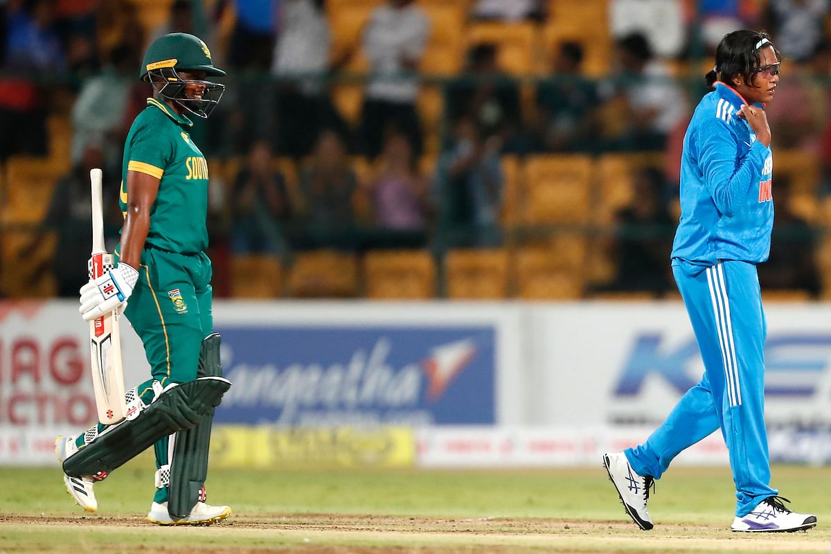 The Proteas batters, apprehensive about attacking the bowlers throughout the innings, became cannon fodder as Asha’s guile and skill gobbled them up like a Malayali uncle drinking Payasam on Onam Sadhya.