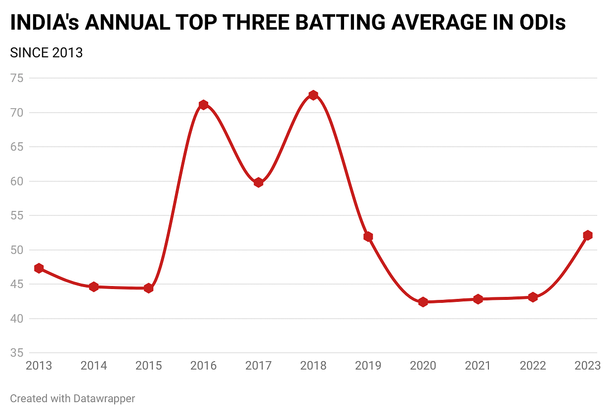 *All data is from ODI cricket since 2022 unless mentioned otherwise